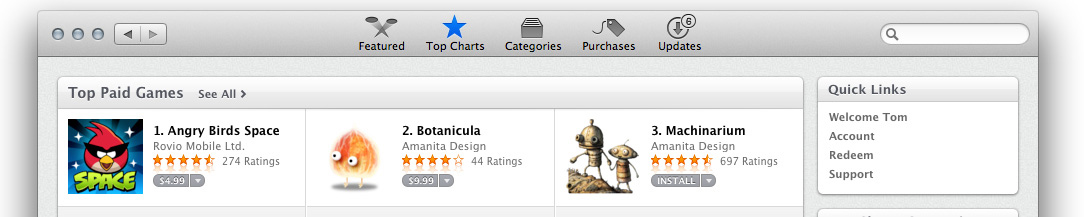 (2 out of 3 top paid apps in US Mac App Store are done in Flash, screenshot from the last week)